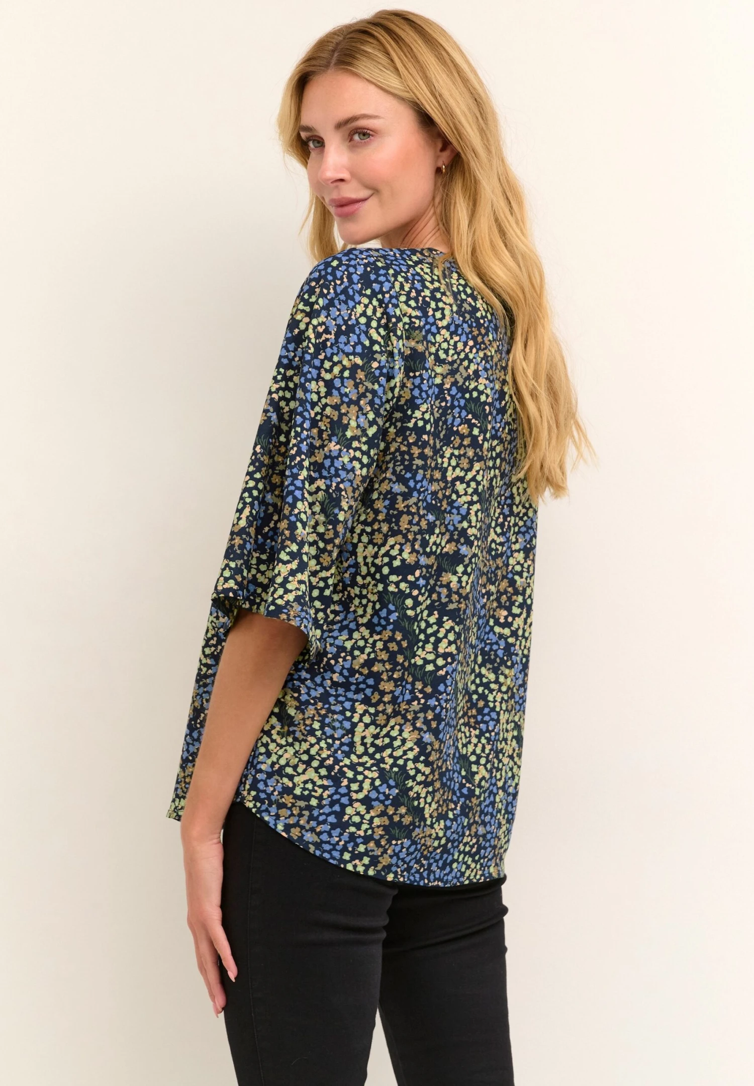 Kaffe Kaulrika – Blouse – Midnight Blue Green Flowers