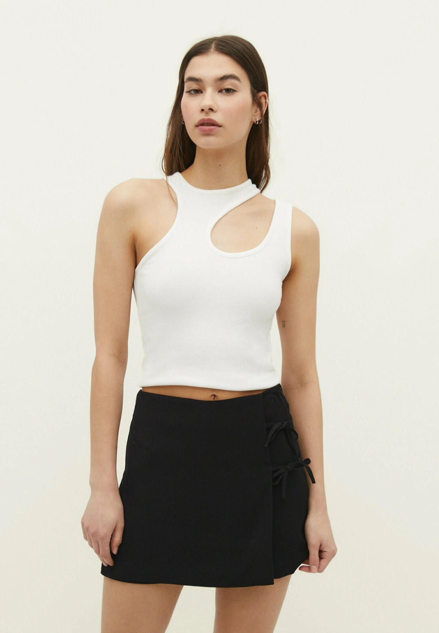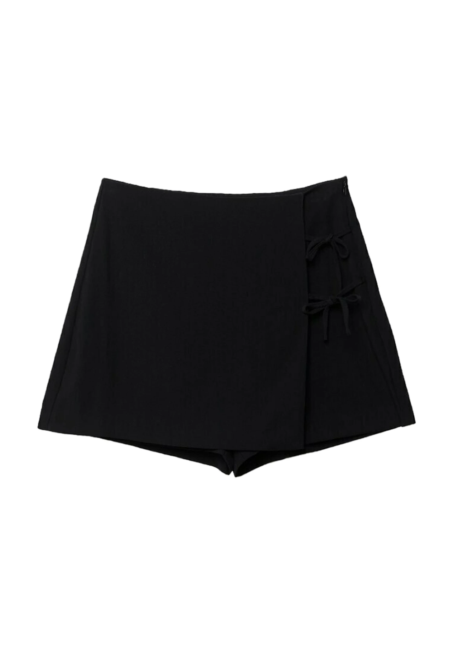 Stradivarius Flowing With Bow Detail – Jupe Portefeuille – Metallic Black